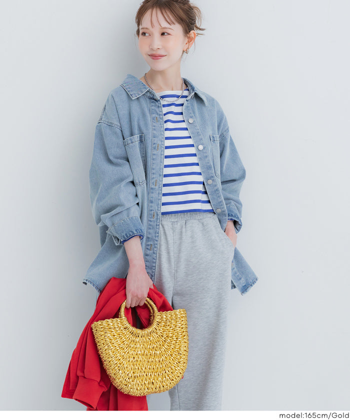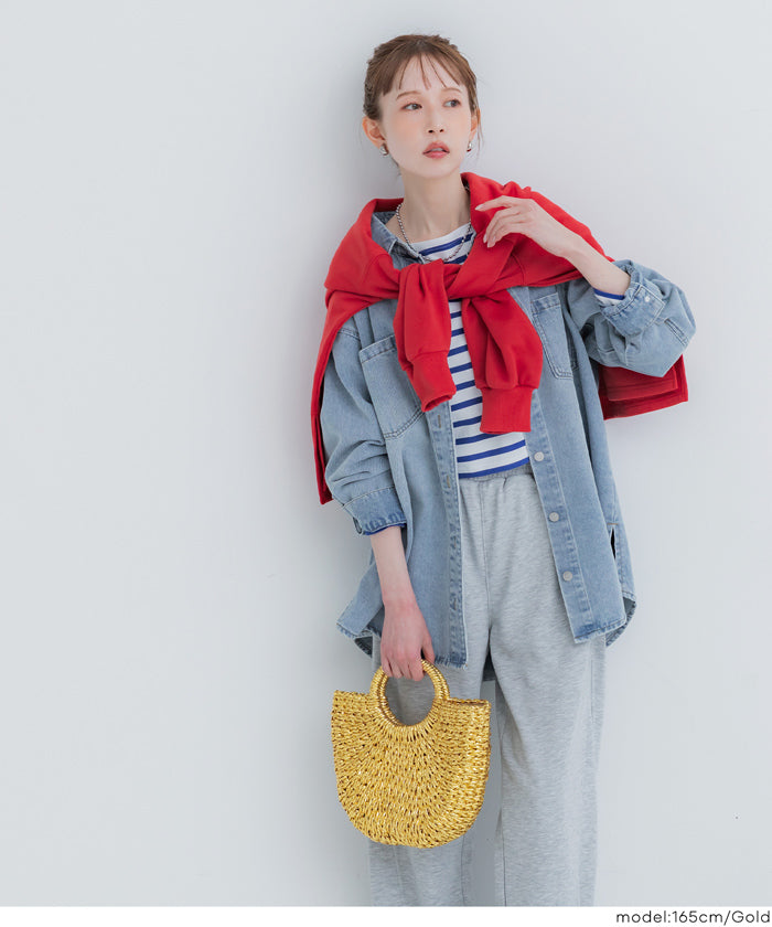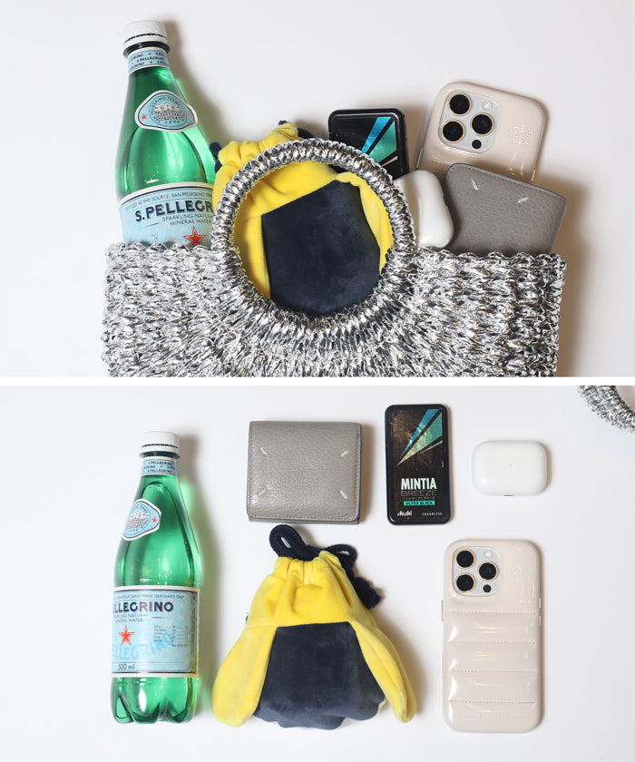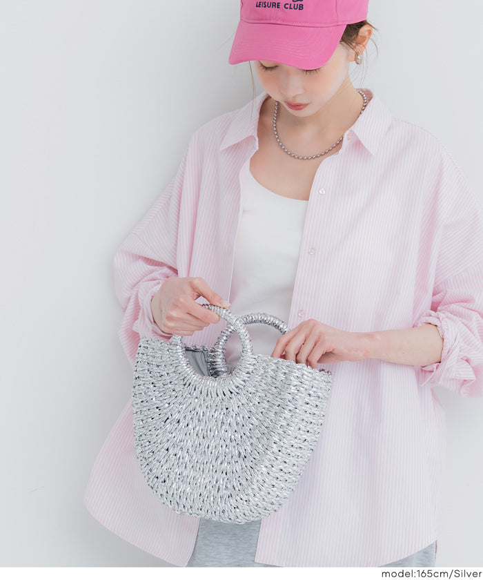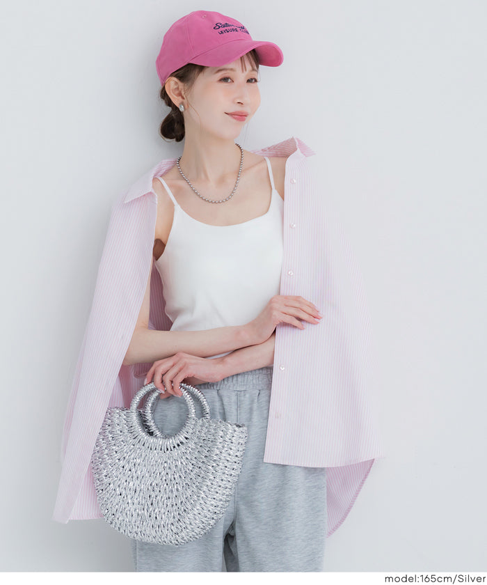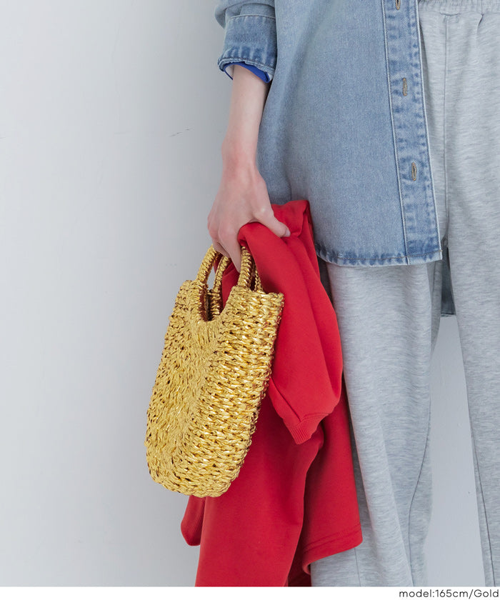 結合籃子包風格的造型與亮片素材,僅需提著即可成為時尚的點綴。